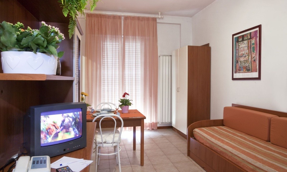 - BILO 4 - dvoupokojový apartmán pro 4 osoby: obývací pokoj s kuchyňským koutem a rozkládací pohovkou pro dva, ložnice s manželskou postelí