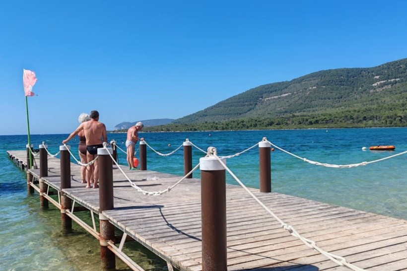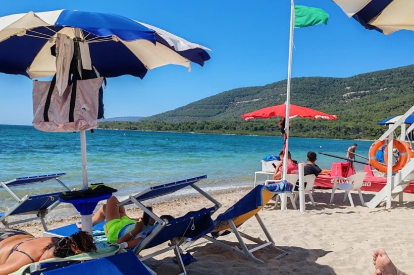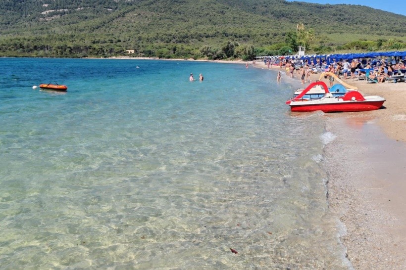Pláž bola piesková a tvorilo ju päť rád lehátok a slnečníkov. Prvá a druhá rada boli platené a od tretej rady boli lehátka a slnečníky zadarmo. Pláž bola čistá a vstup do vody bol napravo pieskový a naľavo bol vstup do vody s malými kamienkami. Voda bola čistá a priezračná. Dokonca sa tu striedali každý deň rôzni plážoví predavači s rôznymi drobnosťami, ako sú náramky, prívesky, okuliare, rôzne plážové oblečenia, klobúky, lopty a iné drobnosti a taktiež ponúkali zapletanie vlasov.