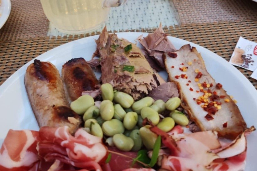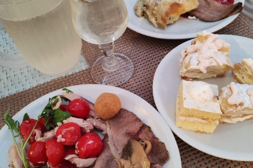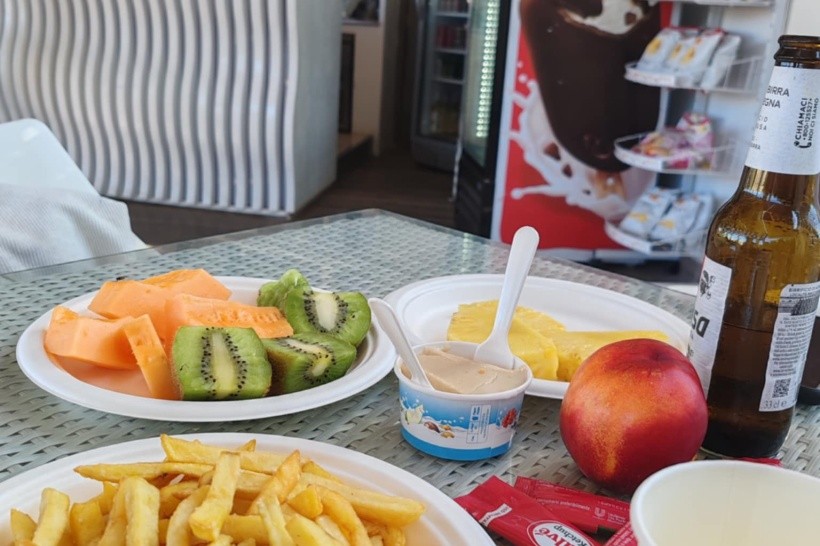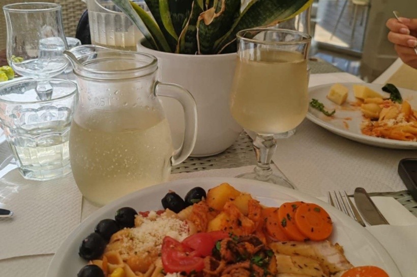 Strava bola úžasná a pestrá, proste typicky Talianska. Každý deň si bolo z čoho vyberať. Na raňajky boli: rôzne kroassanty, malé palacinky, malé plnené šišky, rôzne pečivá, omeleta, praženica, párky, vajíčka na tvrdo, salámy, syry, slaninka, jogurty, ovocia, zelenina, nutela, čaje, kávy, malinovky, ....Na obed: lazane, cestoviny na rôzne spôsoby, viac druhov pizze, ryby na rôzne spôsoby, rôzne druhy mäsa, zeleniny, šaláty, morské plody, zmrzliny tri druhy, koláče, malinovky, voda, biele a červené víno,... V bufete pri bazéne: rôzne druhy pizze a aj hranolky, mäso, kuracie špízy, jogurty, rôzne druhy ovocia (červený aj žltý melón) a rôzne druhy koláčov, hot-dogy, burgre, tousty, ....Na večeru: všetko to isté, čo na obed, ale vždy boli ešte aj špeciality šéfkuchára buď z mäsa, alebo z rýb, samozrejme gril majstri a pred Vami pripravovali šéfkuchári aj cestoviny, .....malinovky, voda perlivá, neperlivá, víno biele aj červené,.....