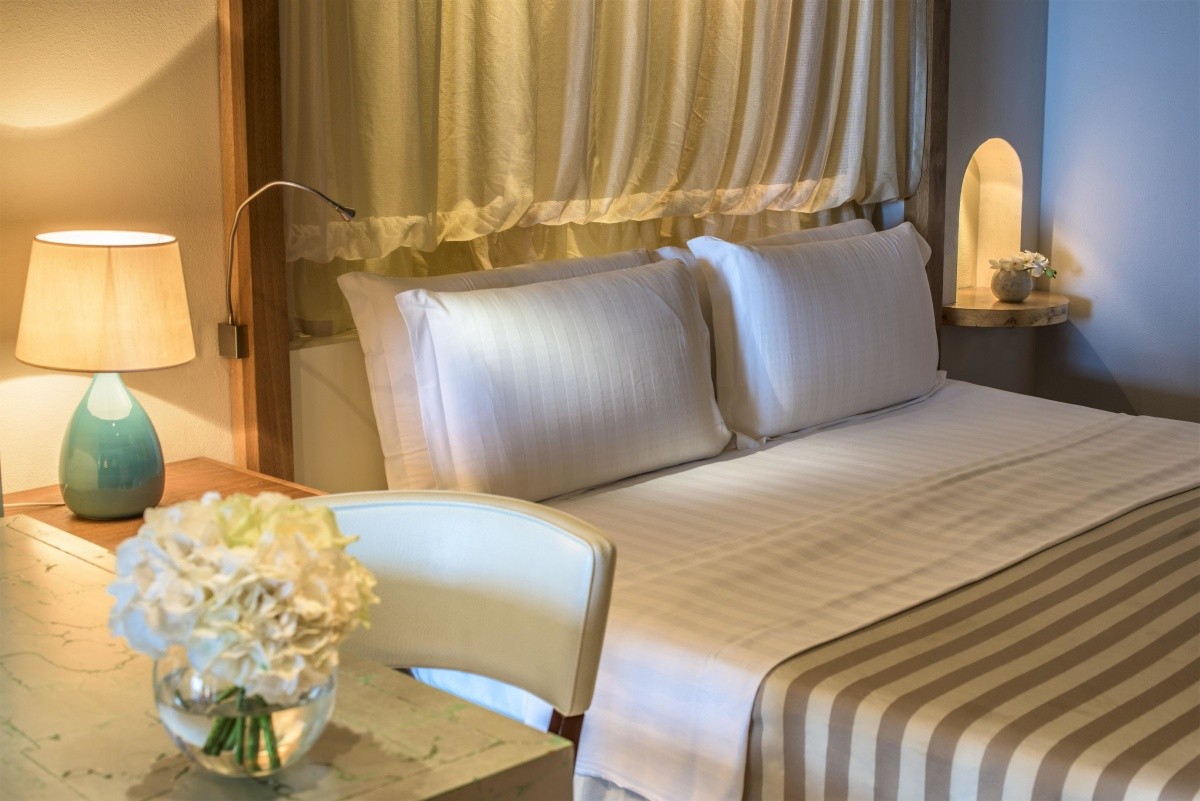 - Dvoulůžkový, deluxe, výhled na moře (částečně), 1 koupelna, sprcha nebo vana, WC, župan, fén, klimatizace, minibar za poplatek, trezor, TV (satelitní TV), WiFi, espresso kávovar, balkon nebo terasa