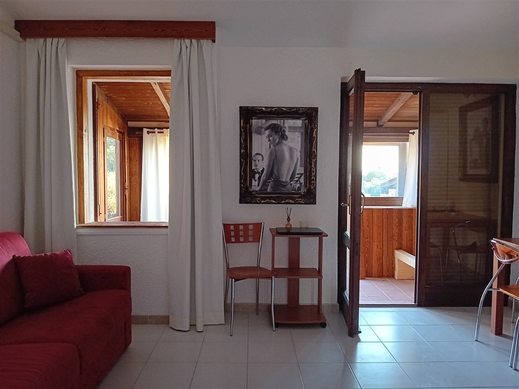 Bilo 4 - 1 ložnice s manželskou postelí, obývací pokoj s kuchyňským koutem a rozkládacím gaučem pro 2 osoby, sociální zařízení se sprchou, terasa s posezením a výhledem na moře