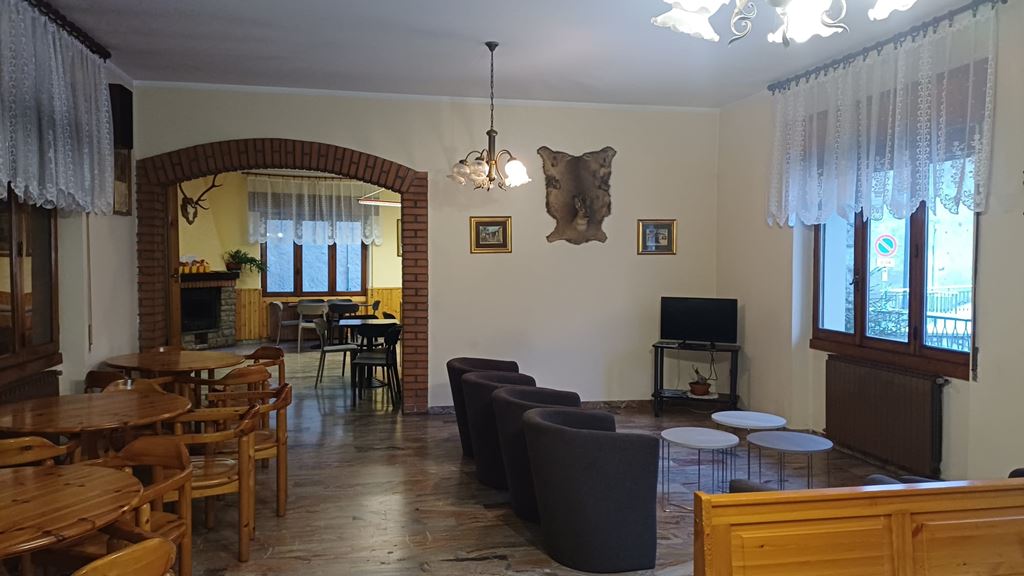 Součástí hotelové budovy je recepce, hotelová restaurace, bar, společenská místnost s krbem a TV, místnost pro uložení lyží, parkování na přilehlém parkovišti.