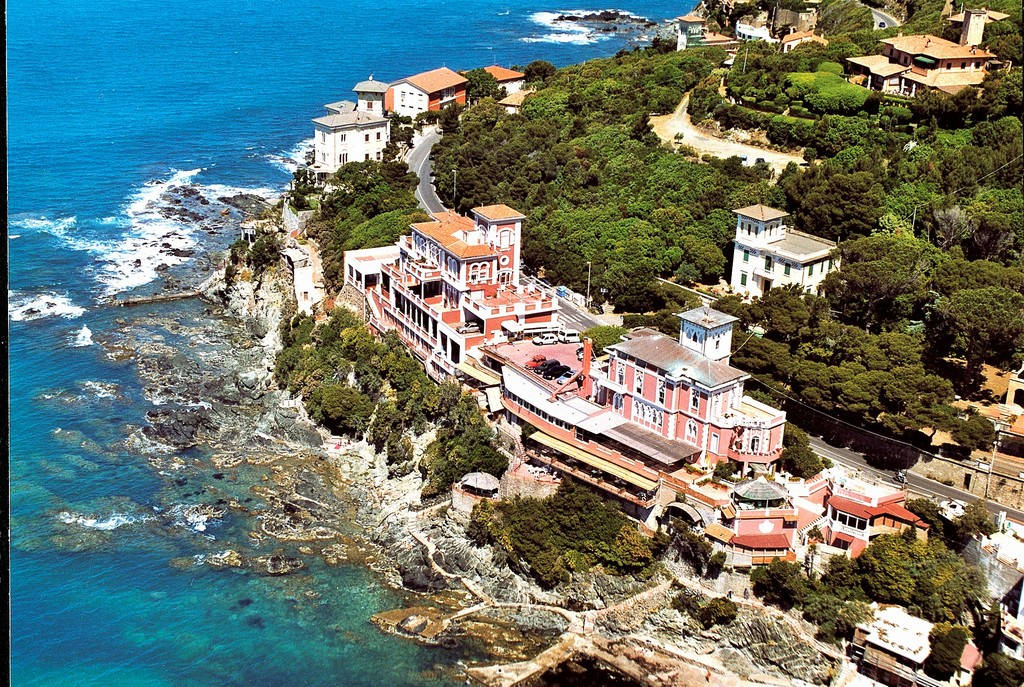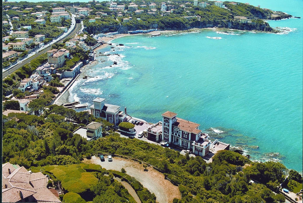 hotel postavený ve stylu starého letohrádku v secesním slohu se nachází v překrásné zátoce Quercetano, 600 m od centra letoviska Castiglioncello přezdívaného Perla Tirrenie, přímo u pláže, která je spíše štěrkovitá s útesy, ale malá část i písečná. Pláže jsou zde krásné, romantické, ale menší a užší. Florencie 100 km, Livorno 30 km, Pisa 45 km.