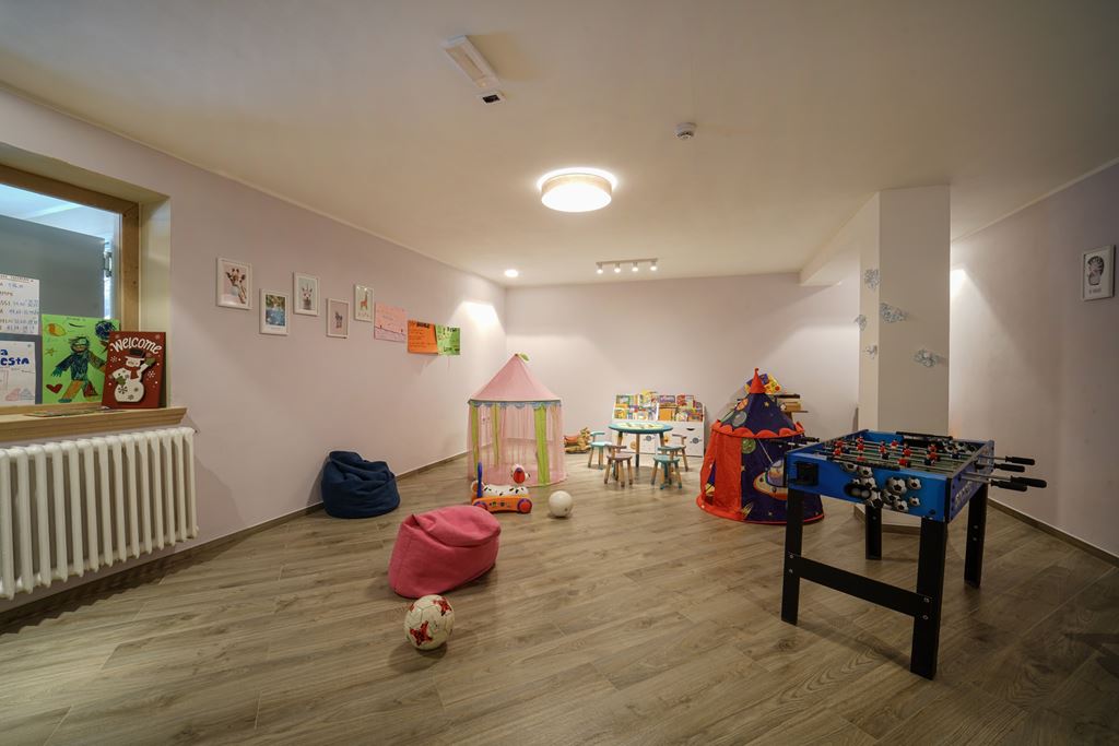 Dále zde najdete recepci, bar, Dolomiti Lounge, dětskou hernu, Wi-Fi ve společných prostorách a vyhřívanou úschovnu lyží a bot.