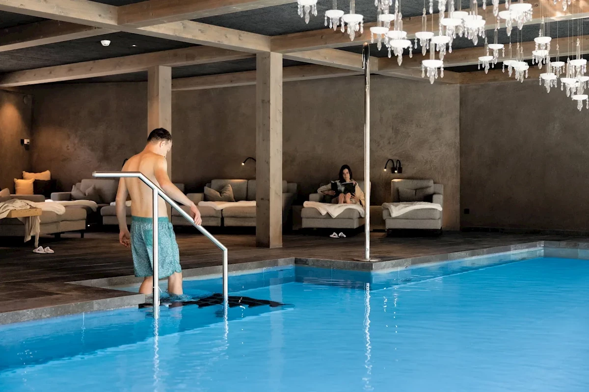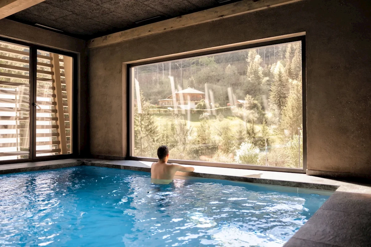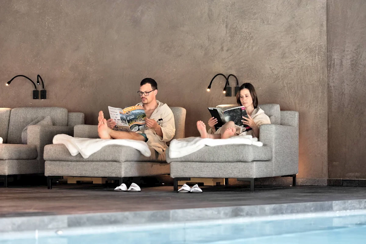 Pro každého: Vyhřívaný krytý bazén s panoramatickým oknem – otevřeno od 6:30 do 19:00, relaxační místnosti se závěsnými lehátky, fitness místnost.