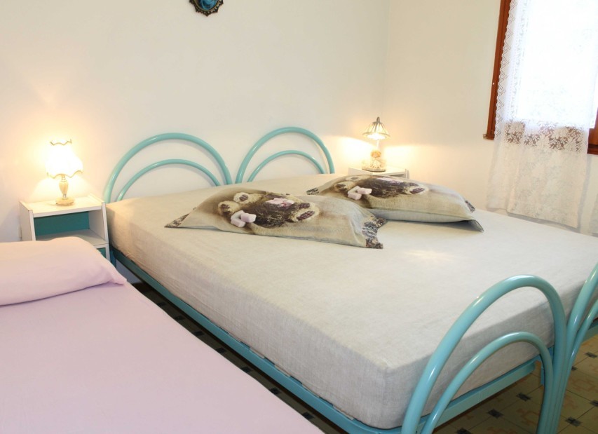 1. patro, balkon, do zahrady, do ulice, klimatizace volitelně, 30 €/týden, bez patrových postelí, TV, lednice, mikrovlnná trouba, sprcha, (sprchový kout), bidet, pračka, zahradní nábytek, parkovací místo, v objektu na společné zahradě, ručníky ubytovatel neposkytuje, nutno si přivézt vlastní, nástupní dny sobota, min. pobyt standardně 7, příjezd od 15:00 do 19:00, odjezd od 08:00 do 09.00