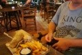 Jídlo je fantastické – snídaně je každý den stejná, ale vydatná: sladkosti, cereálie s mlékem, ovoce, jogurt, britská snídaně se slaninou, fazolemi, bramboráky, klobásami a vejci na tři způsoby, sýr, uzeniny, olivy, rajčata, káva a čaj. Nikdo nehladoví. Večeře jsou každý den jiné – lahodné polévky, předkrmy a saláty, pravděpodobně z deseti na výběr, plus různé teplé pokrmy. Spíše pro milovníky masa – vegetariáni by možná nebyli spokojeni. A pak jsou tu dezerty – různé koláče, pudinky a ovoce. Opravdu lahodné!