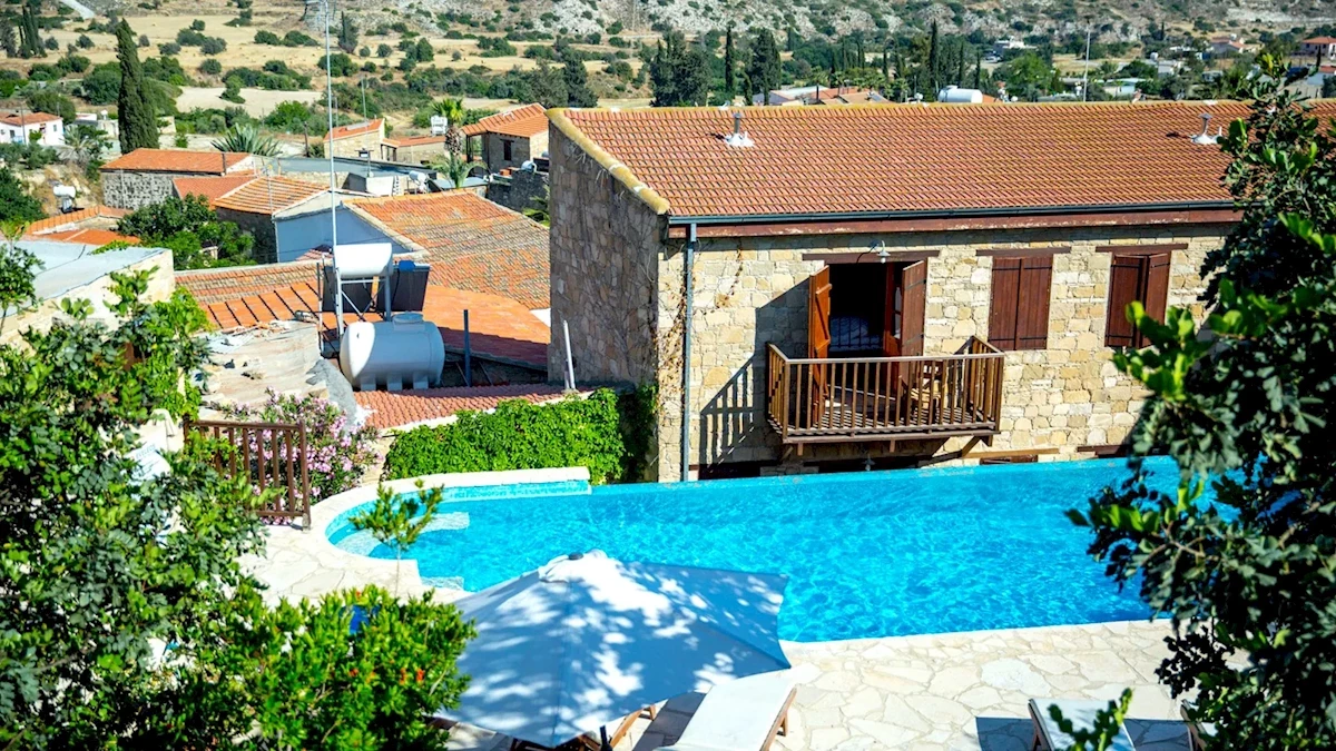 - 29 pokojů, několik budov rozdělených do 3 částí: Eveleos Country House v Tochni, Evkarpos Country House v Psematismenos a Porfyrios Country House v Choirokoitia, až 1 patro