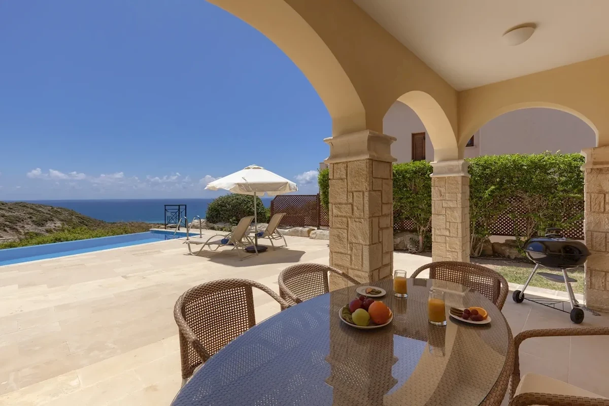 Stylový, luxusní hotelový resort, postavený ve stylu tradiční kyperské vesničky je situován na klidném místě, uprostřed zeleně s nádherným výhledem na legendární Afroditinu skálu, jen 15 km od centra malebného letoviska Paphos. Milovníci golfu ocení moderní 18ti jamkové hřiště přímo u hotelu. Dopravu na nedalekou písčitou pláž zajišťuje hotelový minibus. Mezinárodní letiště Larnaca je vzdáleno 135 km.Vybavení