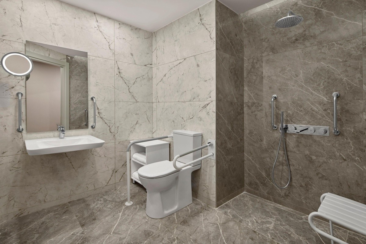 - Whirlpool-Wanne, Dusche, WC, Föhn, Kosmetikspiegel