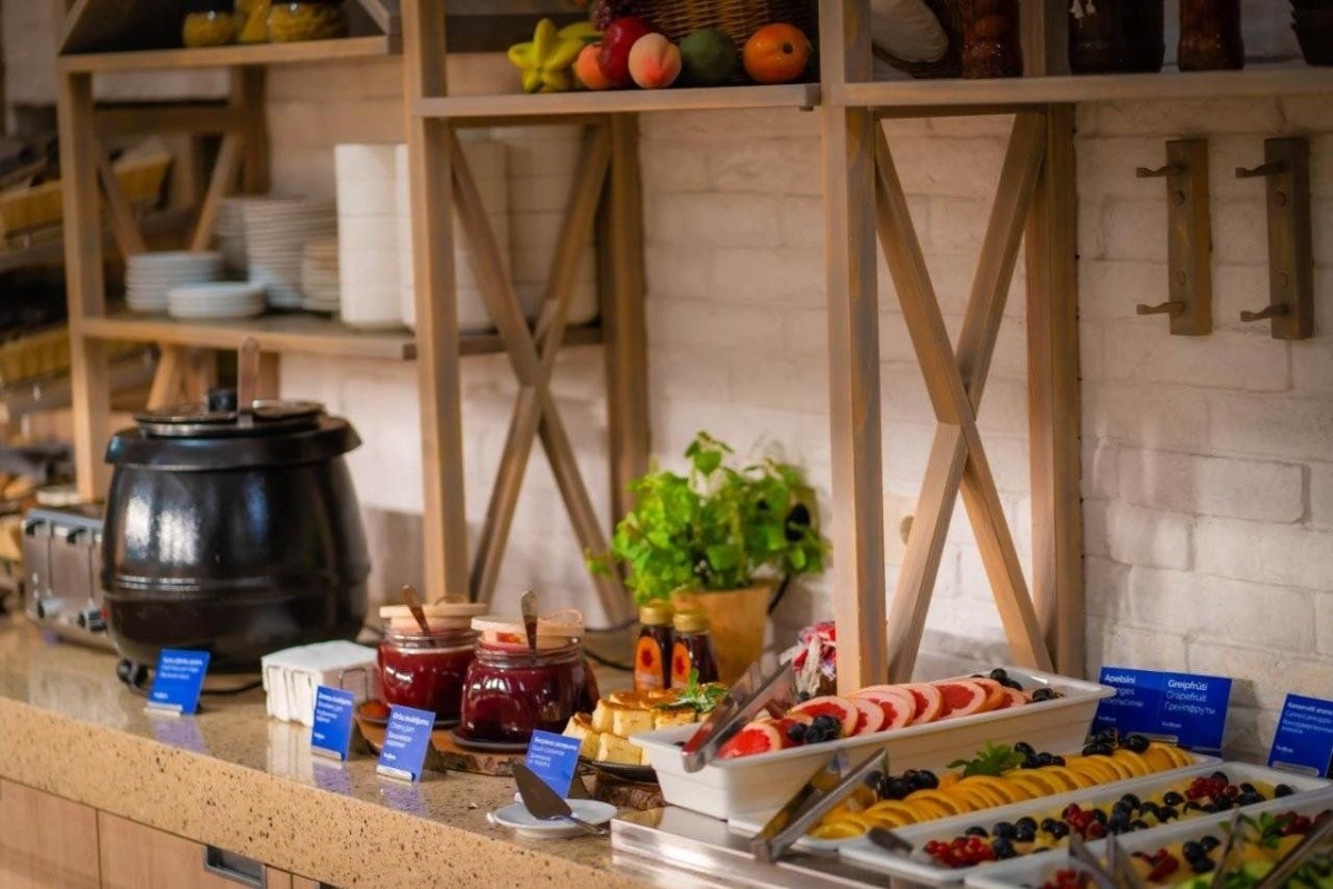 Hotel má vlastní restauraci Tapas Tapas, která nabízí výběr z latvišské a evropské kuchyně. Snídaně obsahují pestrý výběr teplých a studených pokrmů, často včetně šumivého vína.