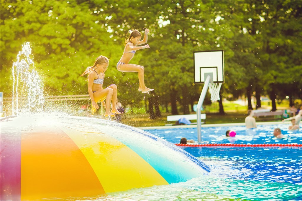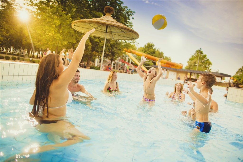 Kryté bazény: zážitkový bazén 32-34°C, perličkový bazén 34-35°C, dětský bazén 31-33°C, ponorný bazén 16-18°C, Částečně kryté: léčebný bazén 33-35°C, zážitkový bazén 31-33°C, Venkovní: zážitkový bazén 31-33°C, léčebný bazén 33-35°C.