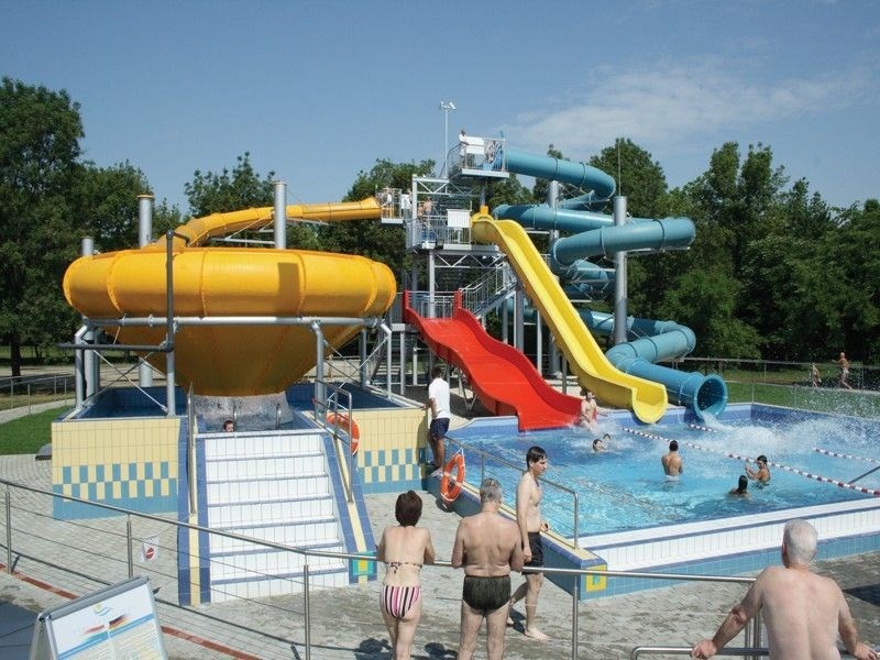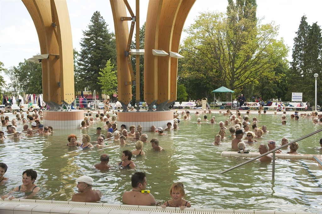 Kryté: léčebný bazén 37-39°C, léčebný bazén 30-32°C, trakce 34-36°C, léčebný bazén 36-38°C, léčebný bazén 34-36°C, bazén na vodní cvičení 33-35°C, plavecký bazén 28-30°C, Částečně kryté: léčebný bazén 34-36°C, léčebný bazén 33-35°C, Venkovní: 2x dětský bazén 28-32°C, venkovní bazén 26-28°C, plavecký bazén 22-26°C, 2x dětský bazén 27-30°C, 2x skluzný bazén 25-27°C, plavecký bazén 28-30°C, plavecký bazén 26-28°C