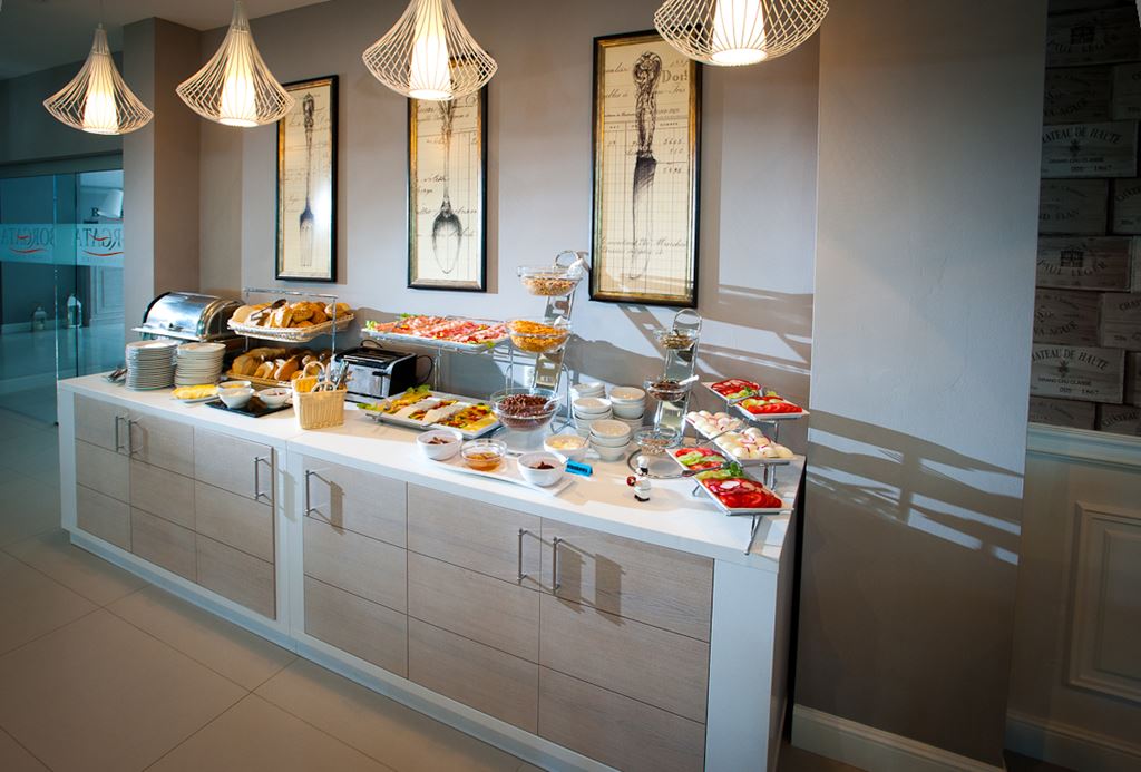 Hostům je k dispozici jídelna, café-bar s výhledem na moře a prostor pro grilování. V ceně pobytu je snídaně formou bufetu. Je možné objednat si polopenzi (snídaně formou bufetu, večeře formou studeného bufetu s teplým jídlem). V případě potřeby je možné zajistit také vegetariánskou či diabetickou stravu.