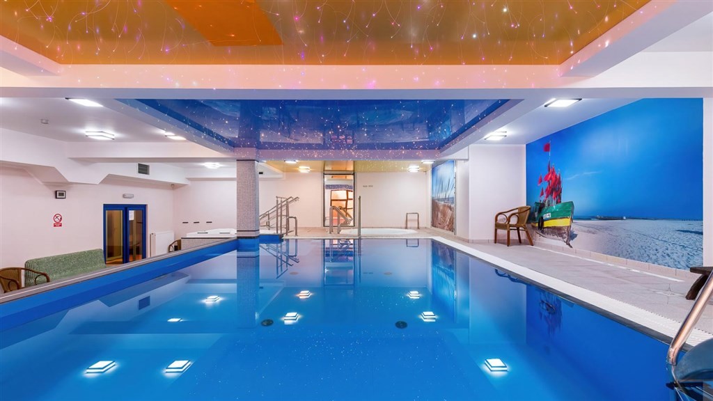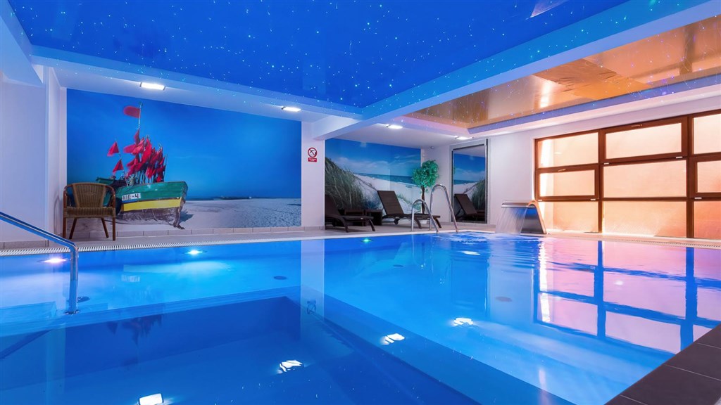 vnitřní bazén, písečná pláž 160 m