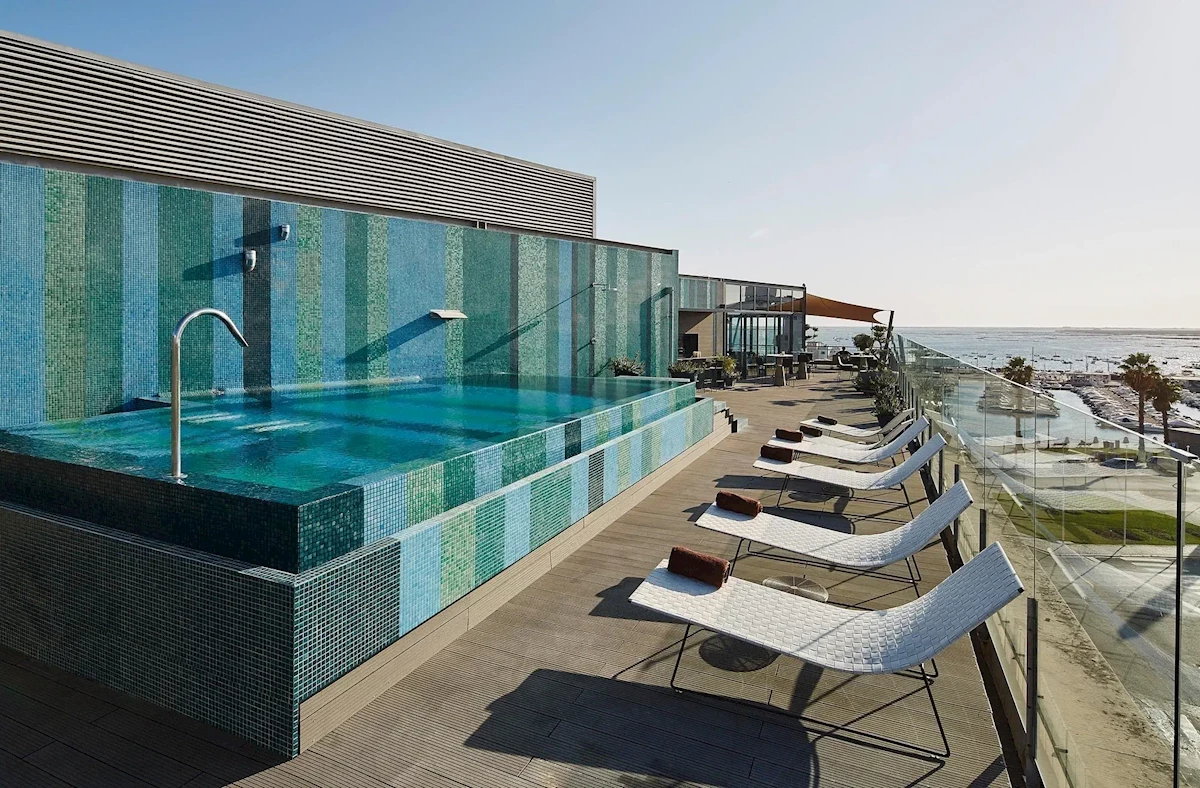 - basen na dachu, prostokątny kształt, słona woda