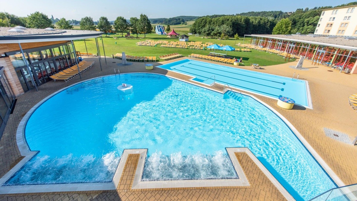 Velikost wellness zóny 5000 m2, bazénová plocha: děti od 0 let, tobogány, wellness zóna: děti od 15 let - volitelné, platí se v resortu, 6,00 EUR za jednotku a noc, parní lázeň - volitelné, platí se v resortu, sauna - volitelné, platí se v resortu, finská sauna - volitelné, platí se v resortu, bio sauna - volitelné, platí se v resortu, termální bazén - zdarma, infračervená kabina - volitelné, platí se v resortu, vířivka - zdarma, tepidárium - volitelné, platí se v resortu, relaxační místnost, nudistická zóna, masáže - na vyžádání, volitelné, platí se v resortu, solárium - volitelné, platí se v resortu, zahrada, trávník, lehátko - zdarma, slunečníky - zdarma
