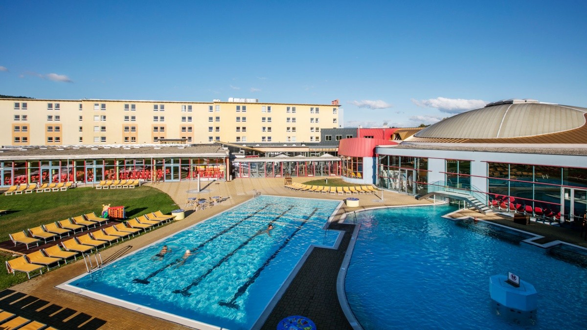 Děti, tolik se toho děje! V „H2O Hotel-Therme-Resort“ je tolik k objevování. Od nekonečné vodní zábavy v uklidňující vodě až po dobrodružné chvíle v našem herním světě HopiHo. Animační tým H2O baví malé i velké každý den spoustou akce, her a vodních radovánek. Ať už jste na jednodenním výletě nebo krátké dovolené, sami, ve dvojici nebo s celou rodinou – H2O Thermen-Paradies, které se nacházejí přímo u sjezdu Bad Waltersdorf / A2, nabízí zábavu na plavání a skluzavce pro každého, bez ohledu na počasí. Naše hosty potěší široká škála vodních atrakcí pro všechny věkové kategorie. Venkovní areál termálních lázní nabízí v létě zvláštní druh zábavy s H2O Action Parkem s lezeckou dráhou. Megaširoká skluzavka s dvojitými pneumatikami a H2O „Speedy“ s indikátory světel a nárazů zajišťují zábavu na skluzavce a akci za každého počasí. Zážitky nabitý pobyt slibují také H2O Waterballs (pouze v létě) a plavání s mořskou pannou. Saunový svět pro všechny hosty od 15 let s 5 000 m2 saunovou zahradou, 7 zdroji tepla a soukromými termálními bazény vás zve k relaxaci a odpočinku. SPA masážní a kosmetický svět, navržený pro pohodu a zábavu, na vás čeká s širokou nabídkou masáží. Pro pohodu našich nejmenších jsou k dispozici také speciální dětské masáže. Pohoda začíná u žaludku! Prostorná restaurace nabízí každému hostu nekonečné kulinářské lahůdky. Hotelový bar je ideálním místem k zakončení večera. S výhledem na přilehlé hřiště je bar centrem resortu a zve celou rodinu k odpočinku. Pokud vás mezi jídly vyhladoví, různé restaurace v dětských termálních lázních H2O nabízejí řadu kulinářských lahůdek, od ledové kávy až po burgery HopiHo. Zvláštní lákadlem je bar u bazénu, kde si můžete posedět ve vodě a vychutnat si barevné koktejlové kreace pro hosty všech věkových kategorií. Tento rodinný hotel s relaxačními zákoutími přímo propojenými s termálními lázněmi nabízí nekonečnou pohodu. Vyberte si z klasických pokojů, exkluzivních apartmánů a relaxačních rodinných pokojů. zařízení / atmosféra: pohodlné, vhodné pro rodiny s dětmi, cílová skupina: skupinové cestování, rodiny, jednotlivci s dětmi