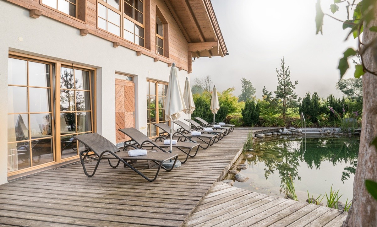 Velikost wellness zóny 400 m2, bazénová zóna: děti od 0 let. pouze v doprovodu dospělé osoby, krytý bazén 10 m x 5 m, přírodní koupaliště, wellness zóna: děti od 16 let, parní lázeň, sauna, finská sauna, sanárium, relaxační místnost, masáže - volitelné, platí se v resortu, kosmetické centrum - volitelné, platí se v resortu, trávník, slunečníky - zdarma