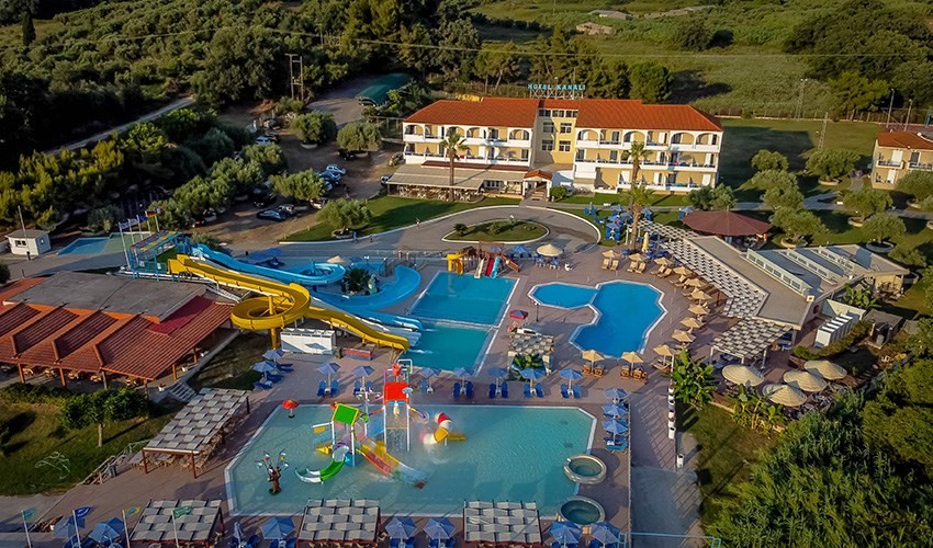 Hotel Kanali je situovaný v oblasti Kanali v blízkosti města Preveza v Řecku, přibližně 15 km od centra města Preveza. Hotel se nachází v bezprostřední blízkosti krystalicky čistých vod Jónského moře – pouhých cca 420 m od pobřeží, odkud lze snadno dojít na pláže jako Monolithi nebo Kanali a užívat si koupání a slunce během dne. Pokoje jsou plně vybaveny televizí, ledničkou, trezorem, koupelnou a toaletními potřebami zdarma. Hotel je zasazen do udržované zahrady v tradičním stylu Epiru, která vytváří příjemné prostředí pro odpočinek a relaxaci během pobytu. Na místě je k dispozici restaurace, která nabízí řecká i mezinárodní jídla, a dále snack bar u bazénu, otevřený během dne pro osvěžení a lehké občerstvení. Hotel má vodní park s tobogány a venkovními bazény, které přináší zábavu a osvěžení pro hosty všech věkových kategorií přímo v areálu. Další volnočasové a sportovní vybavení zahrnuje fotbalové hřiště, tenisový kurt a basketbalové hřiště, které jsou k dispozici pro aktivní hosty.