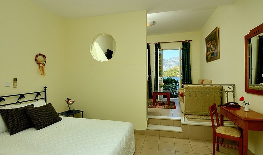 - dvoulůžkové pokoje s možností přistýlky s výhledem na moře (přízemí)