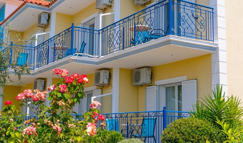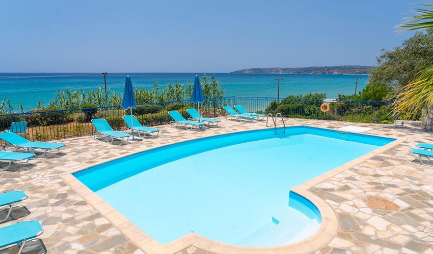 Velmi dobře vedená studia si získávají své hosty přátelskou rodinnou atmosférou, polohou v blízkosti pláže i ubytováním s možností vlastního vaření. Hosté mohou relaxovat v příjemné zahrádce s posezením a bazénem nebo navštívit centrum Lourdas a nasát typickou, poklidnou řeckou atmosféru.Služby za poplatek
