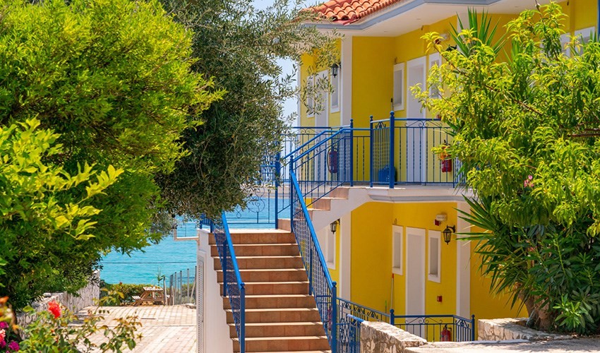 Příjemná prázdninová studia jsou situována na klidném místě, uprostřed zeleně, jen 150 m od malebné písčité pláže a 100 m od centra typické ostrovní vesničky Lourdas. Nákupní možnosti a zábavu mají hosté jen několik minut chůze od ubytování (obchůdky, taverny, půjčovny automobilů a motocyklů, zastávka místní dopravy, vodní sporty na pláži). Mezinárodní letiště Kefalonia je vzdáleno 34 km.Vybavení