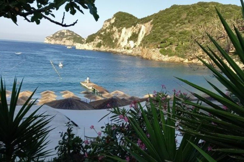 Pláž není vůbec soukromá – jezdí tam všichni z Liapade a každý má přístup. Je tam omezený prostor, protože většina pláže je obsazena placenými lehátky (za astronomickou cenu 15 eur za den – pro srovnání, v jiné části ostrova stojí 10 eur za den).