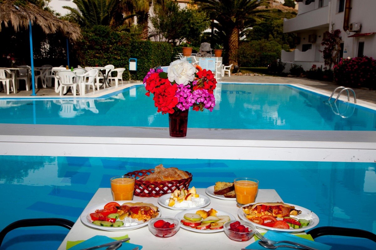 Bez stravy nebo rozšířená kontinentální servíroná snídaně nebo polopenze. Možnost dokoupení i večeří nebo polopenze. Stravování probíhá v hotelu Alianthos Beach.