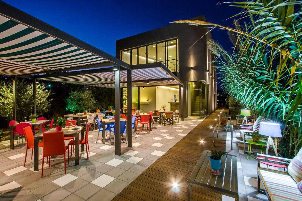 Hotel se nachází v malebné vesničce Platanias na severozápadním pobřeží Kréty, jen pár minut chůze od pláže a malebné promenády s kavárnami, tavernami a obchody. Komplex se skládá z pohodlných maisonette apartmánů, zařízených v světlých středomořských tónech, přičemž každý z nich má vlastní kuchyň nebo kuchyňský kout, což z něj činí ideální volbu pro krátké i dlouhé pobyty.