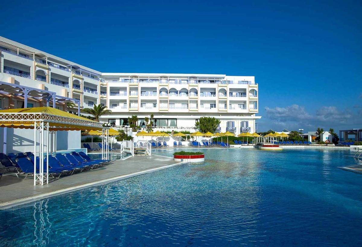 Hotel svým hostům nabízí přijímací prostor s recepcí, televizní koutek, hernu, hotelovou restauraci, zlatnictví, minimarket, kadeřnictví a bar. V udržované zahradě se nachází dva bazény s mořskou vodou, z toho jeden se skluzavkou, samostatný dětský bazén a opalovací terasa s lehátky a slunečníky. Součástí hotelového vybavení je taverna a bar u bazénu. Dětem je určeno dětské hřiště, samostatný dětský bazén a miniklub (od 4 do 12 let).