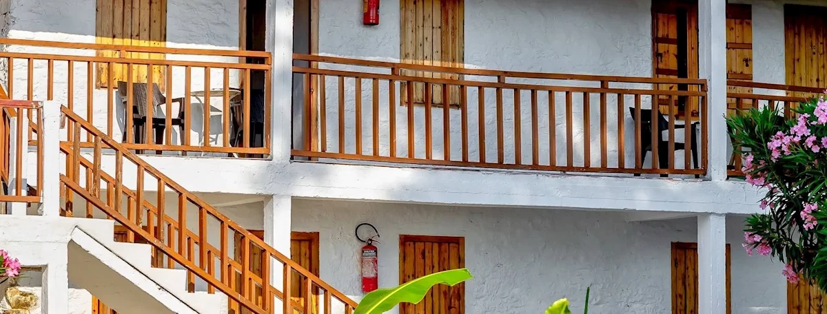 27 prakticky zařízených dvoulůžkových pokojů (některé pokoje s možností přistýlky pro dospělého nebo dítě, nebo dvou přistýlek pro děti) s koupelnami a malými balkony/terasami (se zahradním nábytkem). Některé balkony/terasy nejsou oddělené, ale tvoří společný prostor. Pokoje jsou vybaveny satelitní TV, lednicí a fénem.
