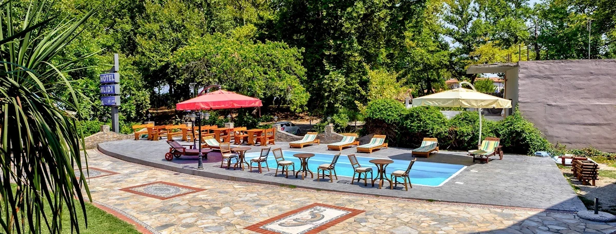 Pro hotelové hosty je k dispozici jeden bazén s lehátky a slunečníky u bazénu, které jsou pro hotelové hosty k dispozici zdarma. Restaurace: Restaurace a bar v areálu hotelu. Udržovaná zahrada a terasa. Objekt byl zrekonstruován v roce 2025.