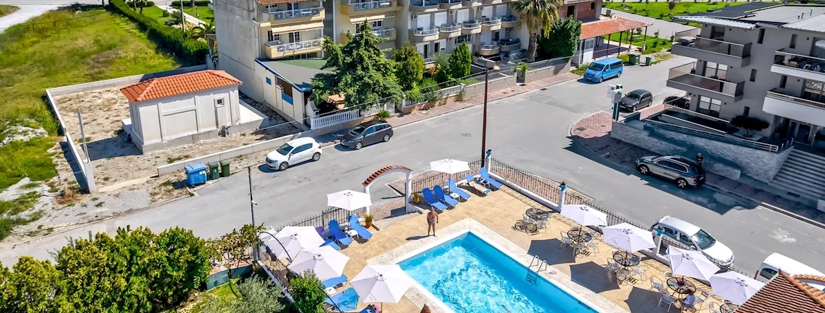 Transfer z letiště v Soluni k objektu trvá přibližně 2 hodiny a vzdálenost je přibližně 95 km. Hotel se nachází přibližně 800 m od centra Paralie a nejbližší obchod je od objektu vzdálen přibližně 150 m. Přibližně 800 m od aparthotelu, v centru Paralie, se nachází zastávka veřejné dopravy, odkud se dostanete do dalších měst na Olympijské riviéře nebo do Katerini, hlavního města Paralie.Pláž
