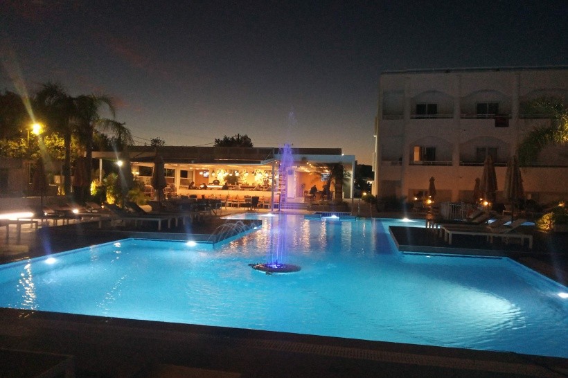 Hotel má pěkný čistý bazén, ve kterém je večer fontána. Je to moc hezký pohled. Vedle bazénu je bar a restaurace, která přijímá i externí hosty. Ceny jsou rozumné, majitelé i číšníci jsou velmi milí. V hotelu je také možné se zaregistrovat a zaplatit za volitelné programy. Pomáhají také s pronájmem auta.