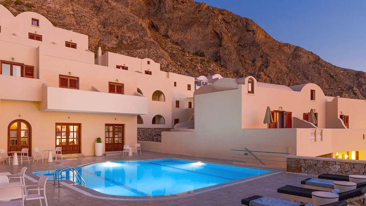 Hotel Epavlis s panoramatickým výhledem na záliv Kamari se nachází v menší pobřežní vesnici na jihovýchodní části ostrova Santorini. Ubytování nabízí pokoje ve světlých tónech, vybavené koupelnou, klimatizací, lednicí, televizí a internetovým připojením. Hostům je k dispozici i hotelová restaurace nebo bar. K relaxaci lze využít hotelové Spa i prostornou terasu s bazénem, výhledem na moře s lehátky a slunečníky. Milovníci aktivnější dovolené mohou využít menší fitness centrum. Lokalita je vhodná nejen pro ničím nerušenou relaxaci, ale také pro objevování historických památek, které se nachází v okolí hotelu. Asi 200 m od ubytování se rozkládá dlouhá pláž, která je lemována typickými řeckými tavernami a řadou barů. Vhodné pro klienty všech věkových kategorií, vyhledávající dovolenou v klidnějším prostředí.