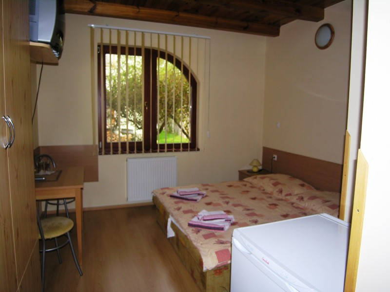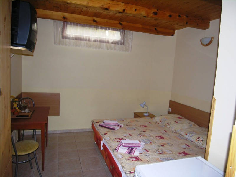 Pokoj má vlastní sociální zařízení , všude je čisto, pohodlná postel, k vybavení patří TV se satelitem a lednička, pokoj má klimatizaci (za poplatek 3 euro) a balkon se skládacím sušákem na prádlo. Na patře je vybavená kuchyňka s varnou konvicí, mikrovlnnou troubou, sporákem a nádobím.