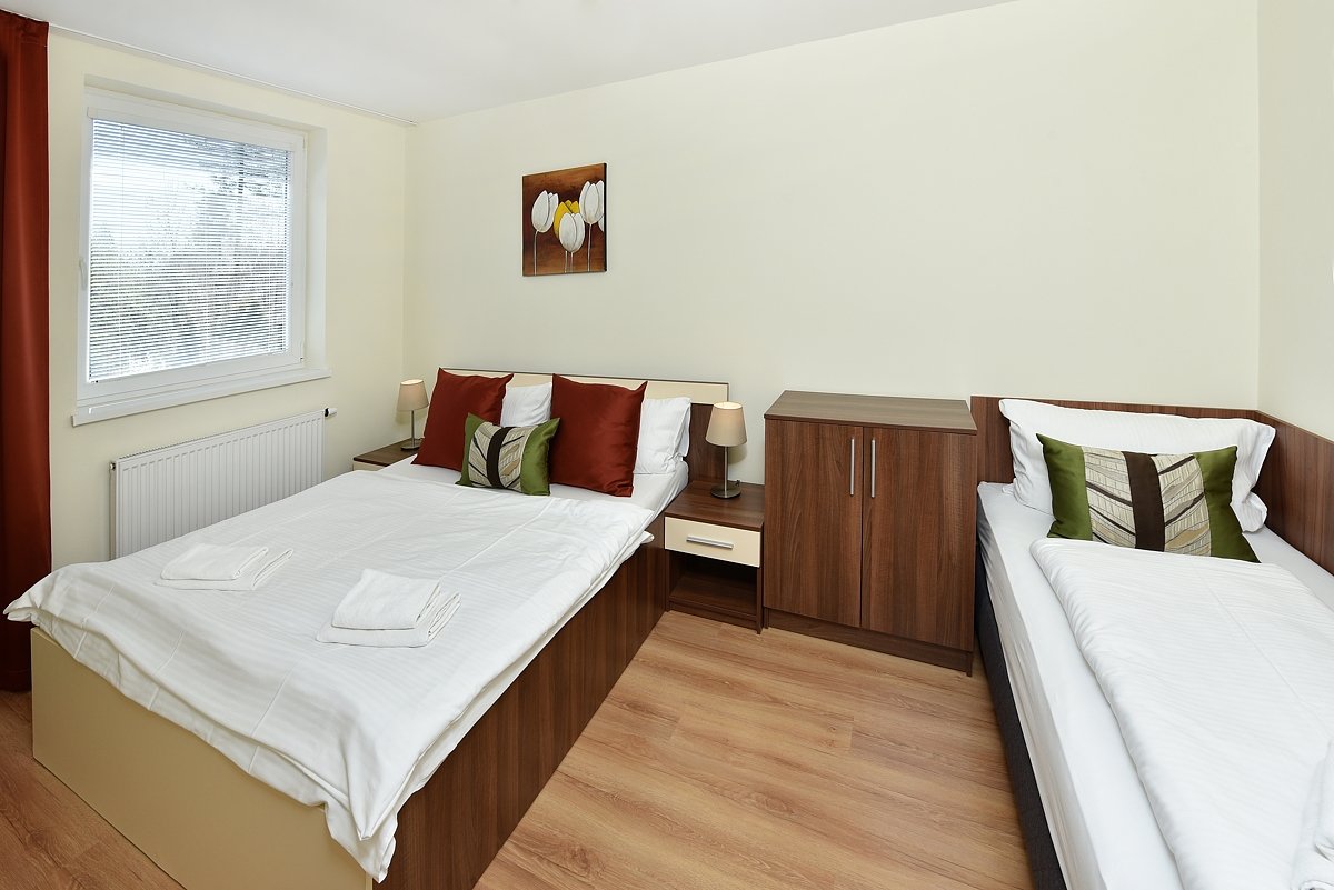Čisté, velké pokoje, každý den čisté ručníky a vynesene koše, hezky zařízené pokoje.