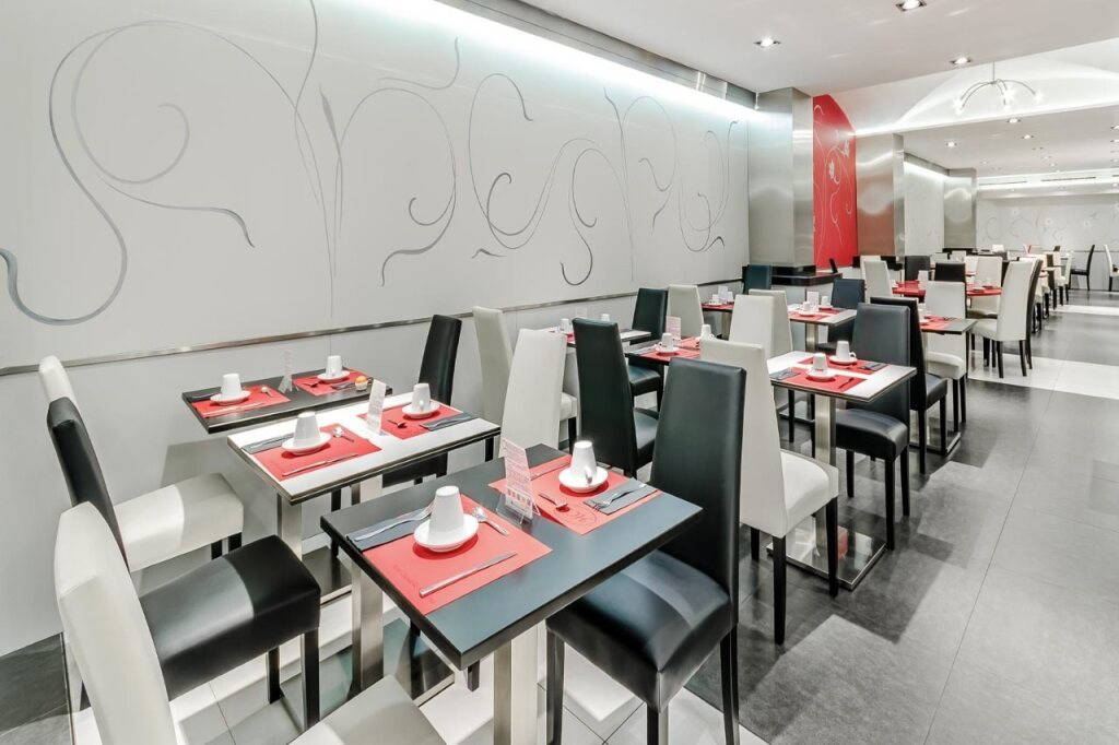 V blízkém okolí hotelu se nachází řada restaurací a barů, zejména v oblasti Passeig del Born a na pobřežní promenádě Passeig de Joan de Borbó, kde si hosté mohou vychutnat místní i mezinárodní kuchyni.