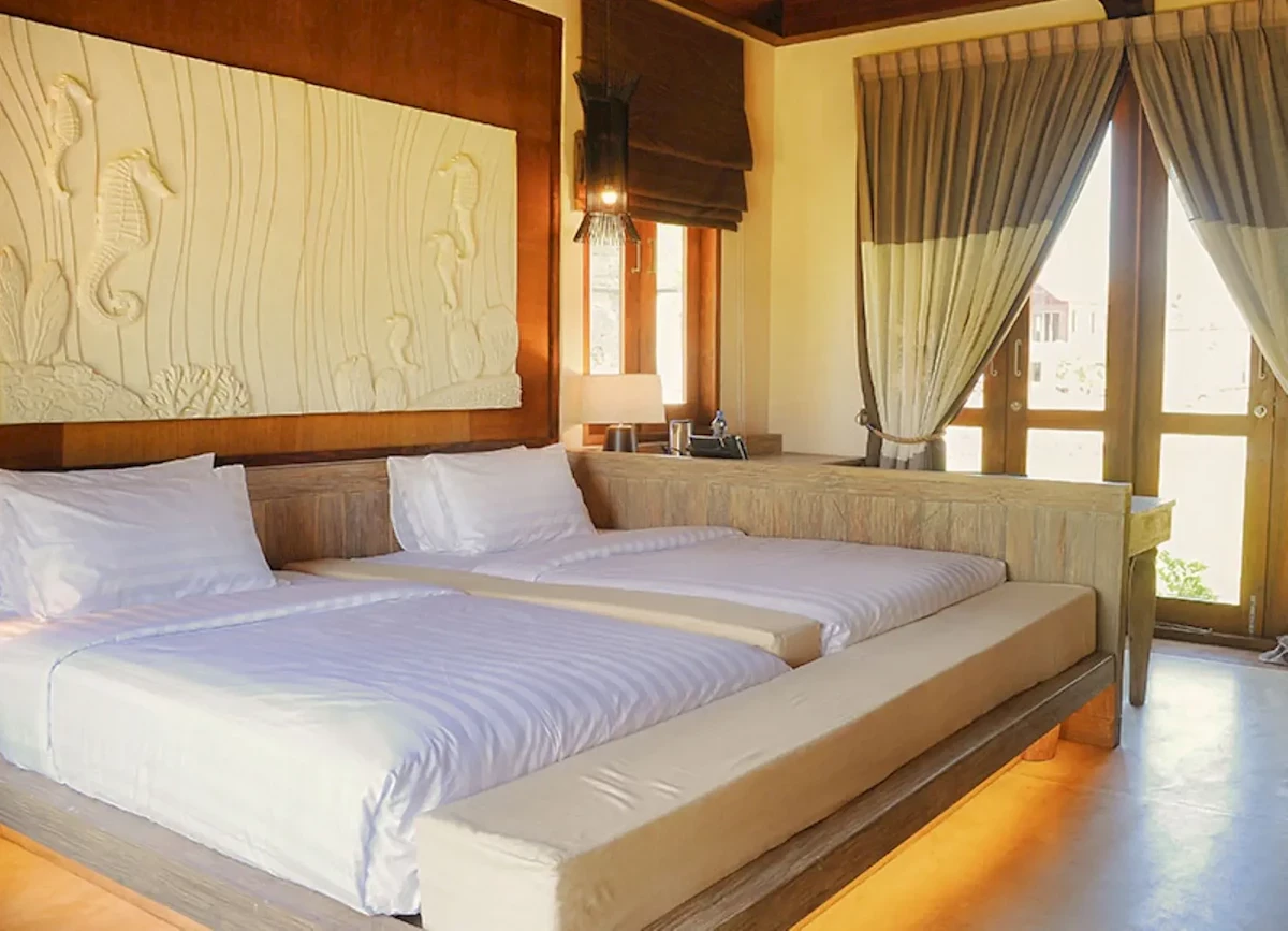 Dla max. 3 osób, Przestrzeń zewnętrzna: Balkon, Kanały telewizji: Angielski, Telefon w pokoju, prysznic, Powierzchnia pokoju: ok. 54 m2, Dostawka: łóżko standardowe, Rodzaj podłogi: płytki, Sprzątanie codziennie, 1 sypialnia, Maksymalna liczba osób dorosłych: 3, Maksymalna liczba dzieci: 0, Widok na ogród i morze, Liczba łazienek: 1, Liczba toalet: 1, Zestaw do parzenia kawy i herbaty, Klimatyzacja: Klimatyzacja indywidualnaDeluxe