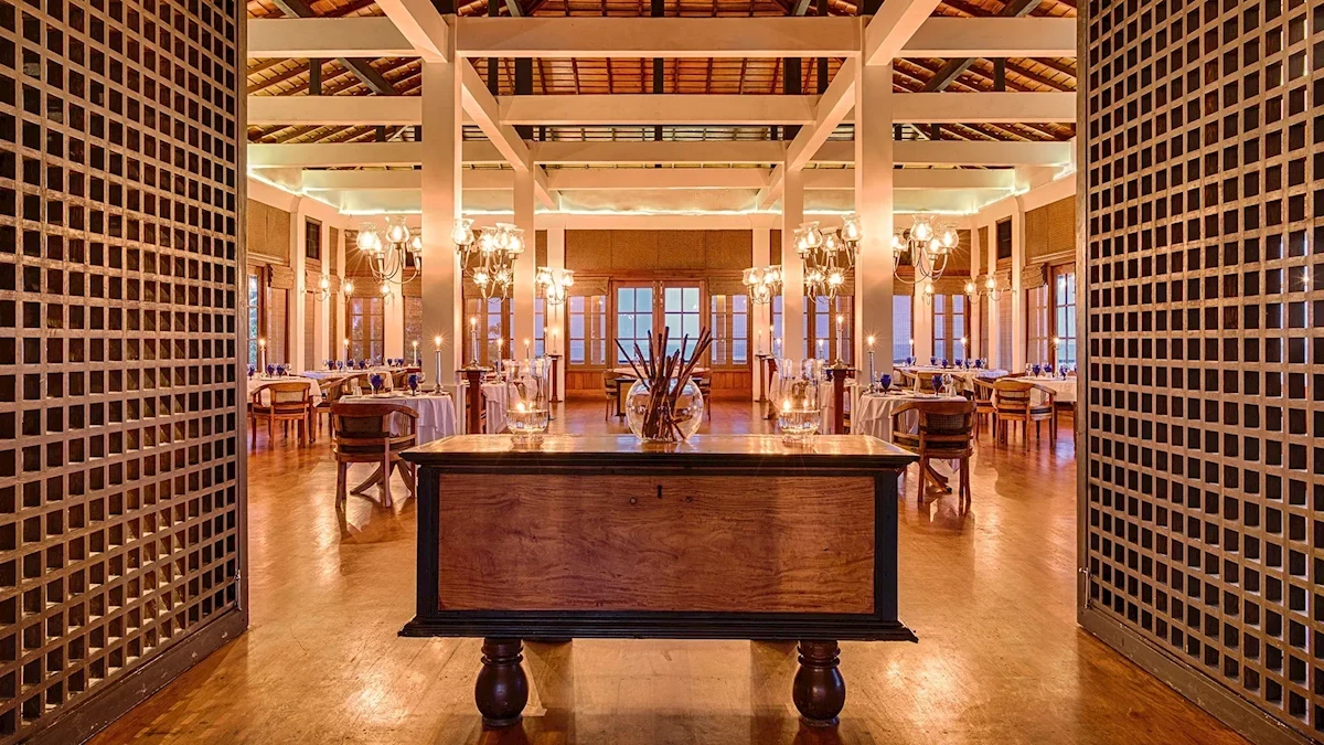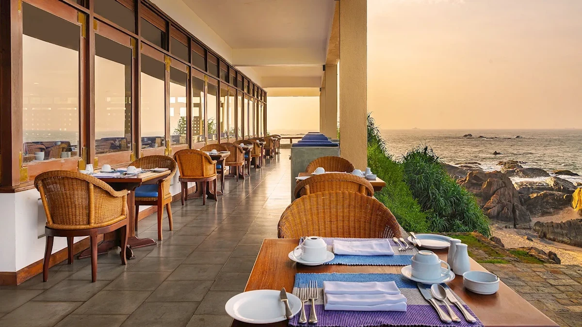 Restauracje- 4 restauracje: restauracja Cinnamon Room (w części A) – obsługa kelnerska, á la carte, owoce morza, dania wegetariańskie, Cardamon Cafe z tarasem – dania w formie bufetu, obsługa kelnerska, á la carte, czynne 24 h, dania wegetariańskie, Nihals Cafe (w części klubowej) – obsługa kelnerska, á la carte, specjały Sri Lanki, Lorenzo's Pizza Corner - kuchnia wegańska wegetariańska oraz pizza i owoce morza
