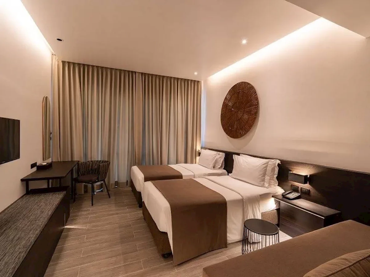 Pro max. 3 osoby, Venkovní prostor: Balkon, TV kanály: Anglicky, Telefon na pokoji, sprcha, Velikost pokoje: cca 55 m2, Přistýlka: standardní postel, Typ podlahy: laminát, Denní úklid, 1 ložnice, Maximální počet dospělých: 2, Maximální počet dětí: 1, Výhled do zahrady, Přímý přístup na pláž, Vstup do společného bazénu, Počet koupelen: 1, Počet toalet: 1, Možnost přípravy kávy a čaje (za příplatek), Klimatizace: Individuální klimatizaceSport a zábava