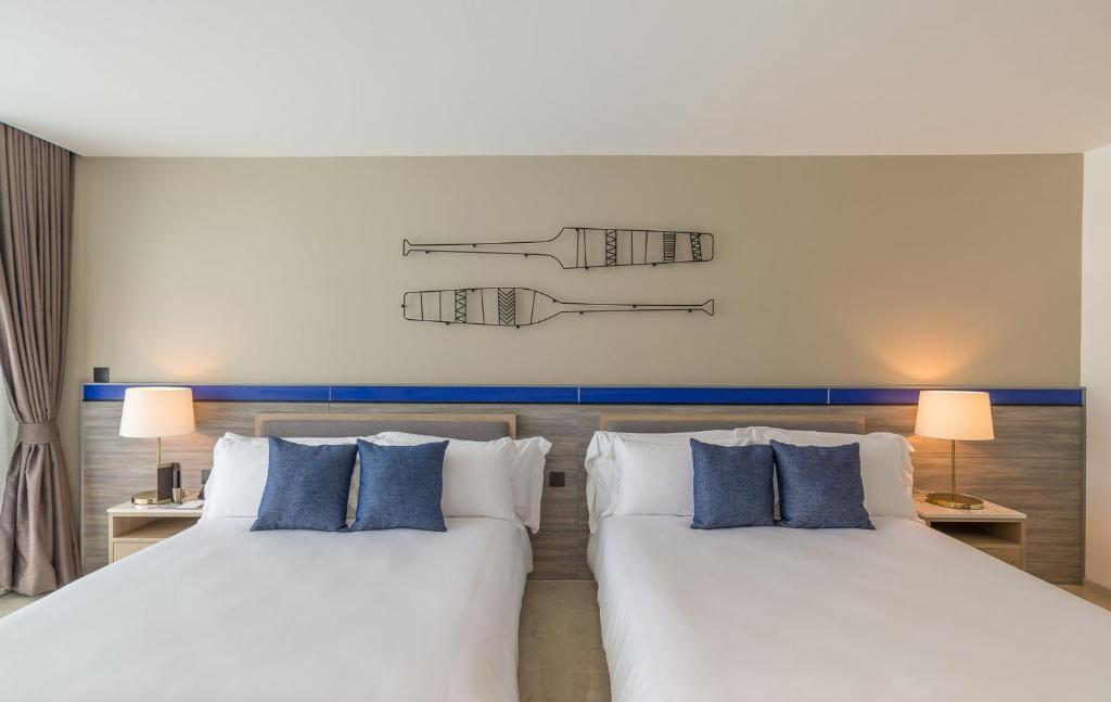 Ubytování: V pokojích je klimatizace a koupelna. K standardnímu zařízení většiny pokojů patří balkón. Pokoje mají dvoulůžkovou postel nebo kingsize manželskou postel. Je možné rezervovat oddělené ložnice. Je zde sejf a za poplatek minibar. Hosté mohou použít ledničku a varnou konvici/kávovar. Hosté mají k dispozici sadu na žehlení. Zařízení pokoje doplňuje připojení k internetu, telefon, televize a WiFi. Koupelny mají sprchový kout a vanu. K dispozici mají hosté také vysoušeč vlasů a župan.