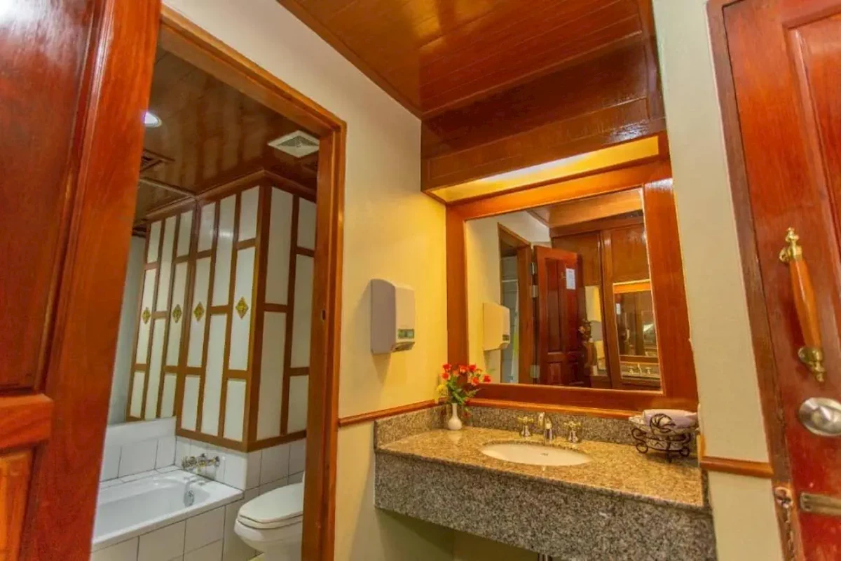 Pro max. 3 osoby, Venkovní prostor: Balkon nebo terasa, TV kanály: angličtina, Telefon na pokoji, sprcha, Velikost pokoje: cca 44 m2, Přistýlka: standardní postel, Typ podlahy: dlažba, Denní úklid, 1 ložnice, Maximální počet dospělých: 3, Maximální počet dětí: 2, Výhled do zahrady, Počet koupelen: 1, Počet toalet: 1, Klimatizace: Individuální klimatizaceDoplňkové služby