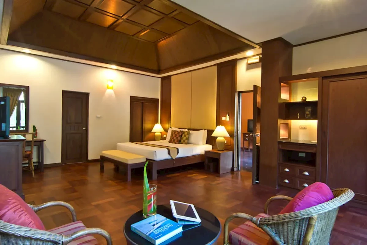 Dla max. 3 osób, Przestrzeń zewnętrzna: Taras, Kanały telewizji: Angielski, Telefon w pokoju, Aneks kuchenny, prysznic, Powierzchnia pokoju: ok. 32 m2, Dostawka: łóżko rozkładane, Rodzaj podłogi: płytki, Sprzątanie codziennie, 1 sypialnia, Maksymalna liczba osób dorosłych: 3, Maksymalna liczba dzieci: 2, Widok na ogród, Liczba łazienek: 1, Liczba toalet: 1, Klimatyzacja: Klimatyzacja indywidualnaPool Side Villa