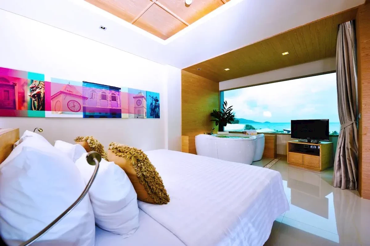 Pro max. 3 osoby, Venkovní prostor: Balkon, TV kanály: angličtina, Telefon v pokoji, sprcha, vířivka, Velikost pokoje: cca 80 m2, Přistýlka: rozkládací postel, Typ podlahy: dlažba, Denní úklid, 1 ložnice, Příčka, Maximální počet dospělých: 3, Maximální počet dětí: 2, Výhled na moře, Počet koupelen: 1, Počet toalet: 1, Možnost přípravy kávy a čaje, Klimatizace: Individuální klimatizacePokoj Deluxe Urban