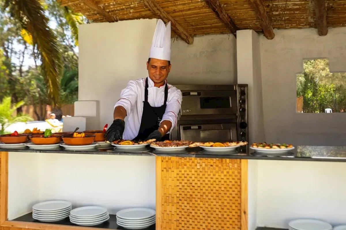 Snídaně (07:00 - 10:00) - Zinnie, bufet, Pozdní snídaně (10:00 - 11:30) - Zinnie, bufet, Oběd (12:30 - 14:30) - Zinnie, bufet, Svačiny (15:00 - 17:30) - Svačiny, dle vlastního menu, Večeře (19:00 - 21:00) - Zinnie, bufet, TUNISIANO (19:00 - 22:00) (19:00 - 22:00), jednou během pobytu, Kuchyně: Tuniská, Rezervace nutná: Ano, Lobby Bar (09:00 - 00:00), Nápoje: místní lihoviny, vybrané dovážené lihoviny, nealkoholické nápoje (09:00 - 00:00), Bar u bazénu (10:00 - 00:00), Nápoje: místní alkoholické nápoje, nealkoholické nápoje (10:00 - 00:00), Plážový bar (10:00 - 18:00), Nápoje: nealkoholické nápoje (10:00 - 18:00), nealkoholické nápoje, místní alkoholické nápoje, vybrané dovážené alkoholické nápoje ¹⁾¹⁾ - příplatek