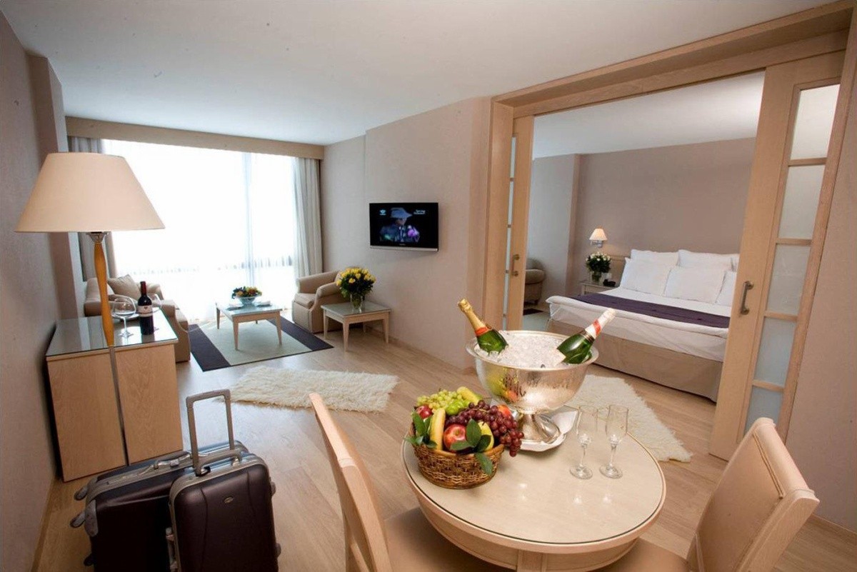 V pokojích je klimatizace, ústřední topení, kuchyň a koupelna. Většina pokojů má výhled na moře. Pokoje mají dvoulůžkovou postel a rozkládací pohovku. Je možné požádat o přistýlku. Také je zde sejf, minibar a pracovní stůl. K dispozici je také mini lednička a varná konvice/kávovar. Hosté mají k dispozici sadu na žehlení. K základnímu vybavení patří připojení k internetu, telefon, televize a WiFi (zdarma). Hosté mohou využít turn-down service (službu večerní rozestýlky). Je možné rezervovat bezbariérové pokoje. V koupelnách je sprchový kout. Je zde vysoušeč vlasů. Ke komfortímu vybavení koupelen patří kosmetické potřeby. Je možné rezervovat koupelnu s bezbariérovým přístupem. V objektu jsou pokoje pro rodiny a nekuřácké pokoje.Strava