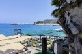 Čistá, kamenitá, hned hloubka. Na šnorchlování to není. Lehátek bylo nedostatek, ale nevadilo, chodili jsme z pláže rovnou k baru. Výhled na nedaleký přístav. Okolí zelené, upravené, cestičky.