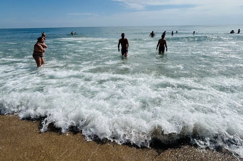 Pláž čistá, byla by vhodná sprcha se sladkou vodou na opláchnutí slané vody .